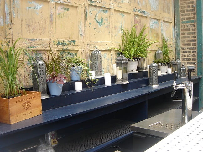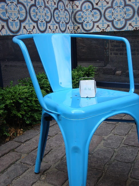 To get to this restaurant you walk down an alley off of a side street that has you thinking you clearly took a wrong turn half a block back. But never fear. The alley opens into a lovely courtyard strung with twinkle lights and decorated with tiles, paintings and ferns. Inside, RM Champagne Salon has a self-described Salvador-Dali-inspired décor. It seemed much to charming to me for that comparison, but our host said it had to do in part with his enjoyment of “elaborate, crazy parties” and encouraged us to “eat up and drink up!”