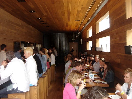 Pamela asked Blackbird Executive Chef Paul Kahan about his inspiration for his cooking. He said he gathers inspiration from sources such as the Santa Monica farmers market (where he had recently discovered some interesting dried fruits), his wife’s vegetarian magazines and from talking with other chefs. This was neat to hear because it showed me a very natural, day-to-day method of flavor creation. There isn’t some magic formula or secret society — he pairs his knowledge and expertise with observations of the world around him.