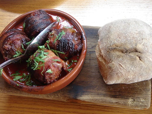 I don’t eat pork…but these chorizo-stuffed, bacon-wrapped dates were delicious! The smoky, spicy, warmth of the chorizo flavor was the perfect pairing with the sweet date. And you needed to eat them together for the dish to work.
