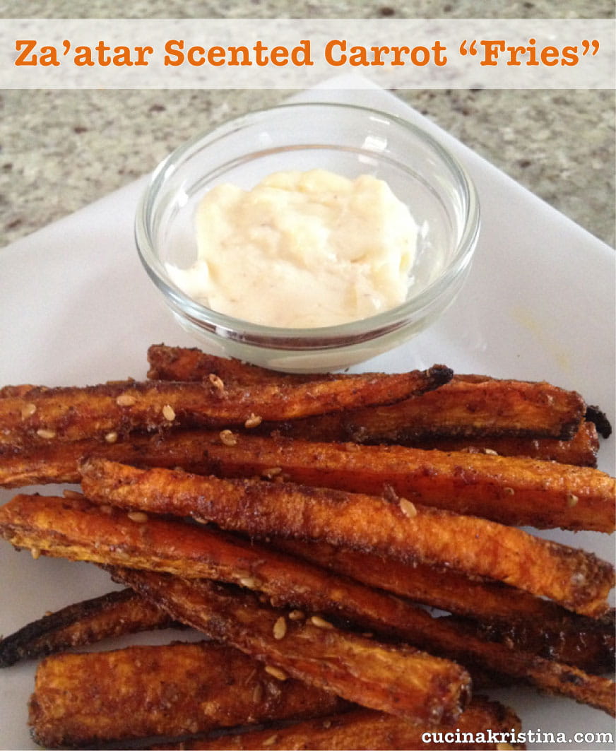 - Interesting find: www.cucinakristina.com features the recipe Za’atar Carrot Fries, which are baked coconut oil and za’atar coated carrots. (See image below from cucinakristina.com.)