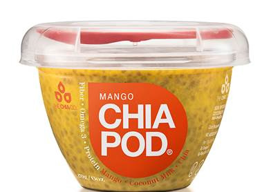 Chia Pod Oats with Banana & Mango contains chia seeds, whole grains oats with coconut oil, banana and mango.