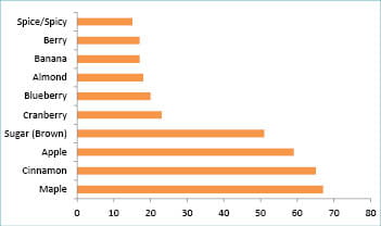 Fruit, spice and berry fruit are the top flavor sub-categories for hot cereal. The top individual flavors were maple, cinnamon and apple. New hot cereal flavors in 2013 and 2014 include: blackberry, coconut and apple pie. Nut flavors were among the top growing flavors, with pecan, almond and walnut growing 50%, 40% and 33% respectively. Flavor combinations of note include: Lean Cuisine Morning Collection Cranberry, Pistachio & Orange Zest Oatmeal and Modern Oats Mango Blackberry All Natural Oatmeal.