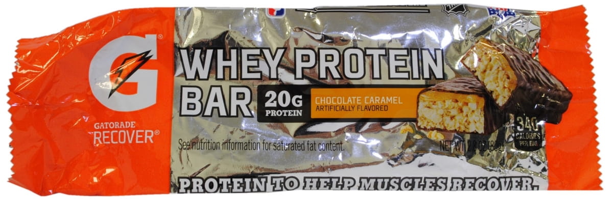 Gatorade Recover Chocolate Caramel Whey Protein Bar: Contains 20g of protein to help muscle recovery.