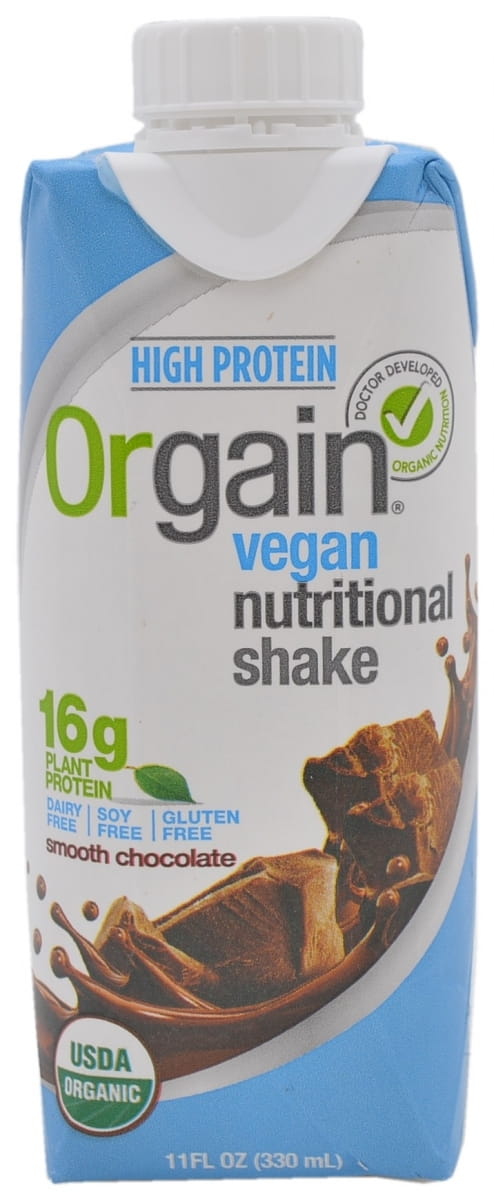 Orgain Smooth Chocolate Vegan Nutritional Shake: Contains 16g plant protein, 10 organic certified fruits and veggies and 21 vitamins and minerals. It is claimed to be perfect for pre- or post-workout replenishment, sustained energy, an antioxidant boost, weight management and busy lifestyles.