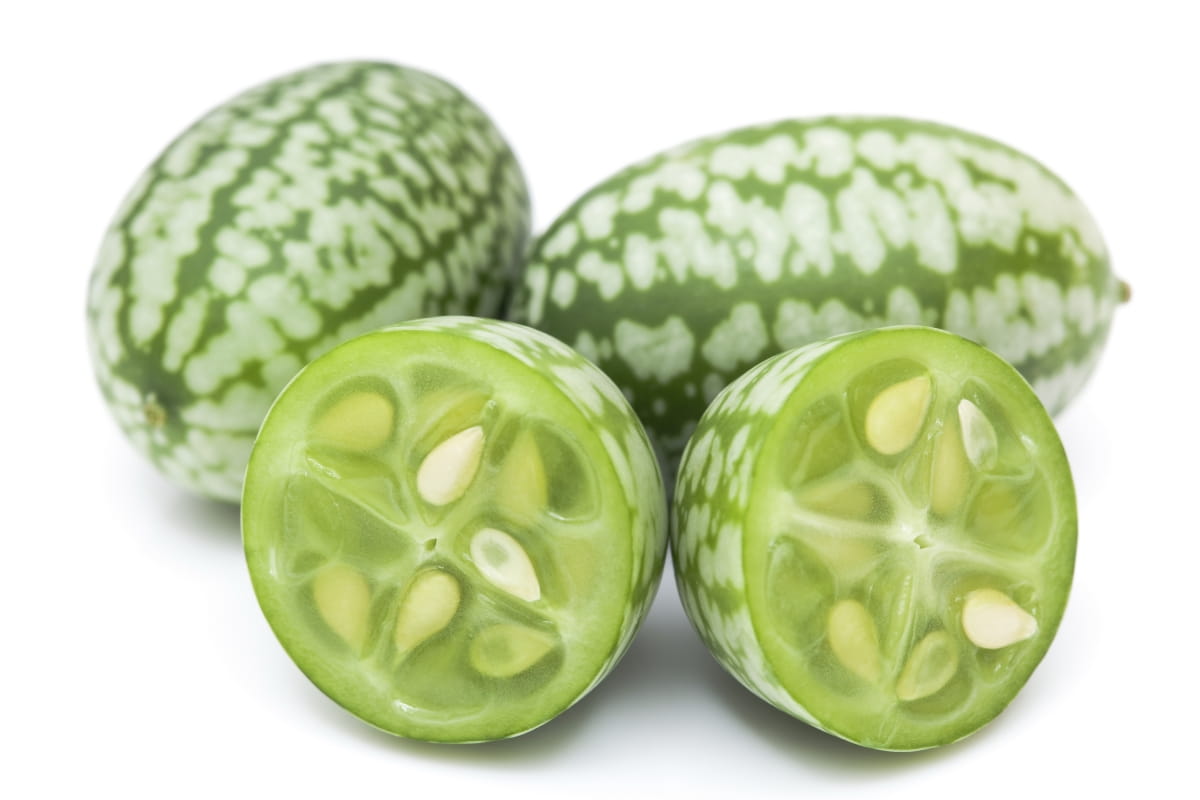 • Cucamelon – it looks like a cross between a cucumber and a watermelon, and it tastes like a lime. This small, grape-sized fruit that is irresistible. DIY-ers can order cucamelon seeds for gardens online from Amazon.