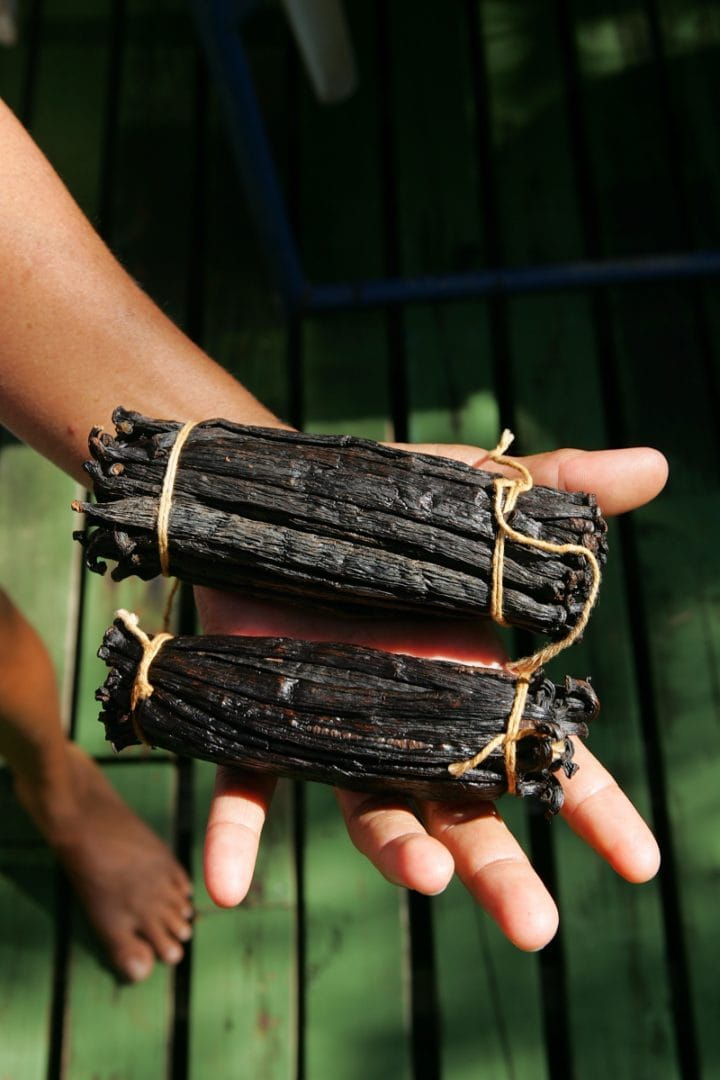 Traditional curing ratios are around 5.5 kg of green vanilla beans for 1kg of cured (black) beans. By 2016, it took around 8kg of green beans to