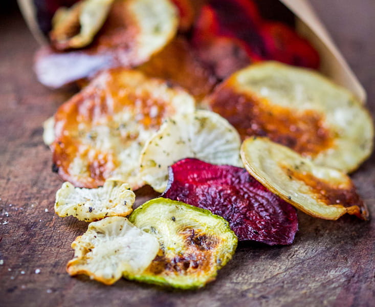 While traditional flavorings like sea salt, cheddar, and nacho are common in plant-based chips, other flavors are being used, like harissa, and even other veggie and fruit flavors, like asparagus, split pea and jackfruit.