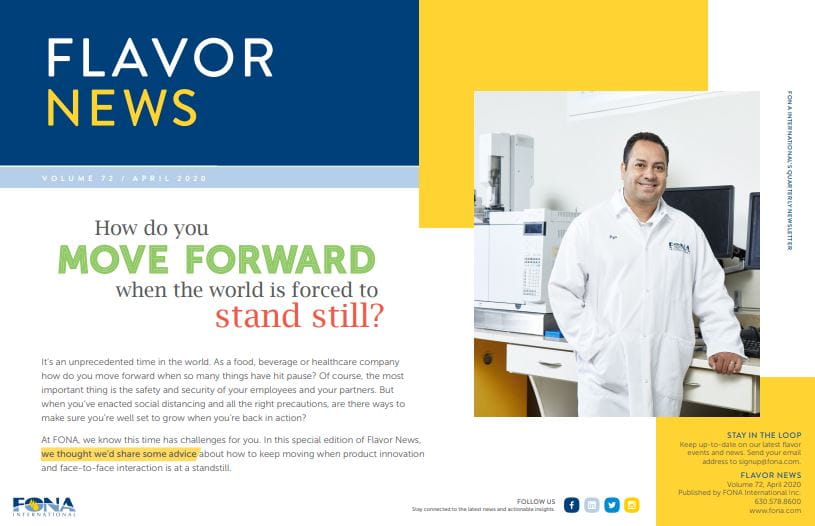 The COVID-19 pandemic has shifted “business as usual” worldwide. Whatever your challenge, we want to help. How do you move forward when so much has hit pause? From product innovation to face-to-face contact, a lot has changed. After you’ve secured the health, safety and security of your employees and your partners… are there ways to make sure you’re well set to grow when everyone is fully back in action? This special virtual edition of Flavor News includes guidance, plus a message of gratitude from FONA Founder and CEO Joe Slawek.