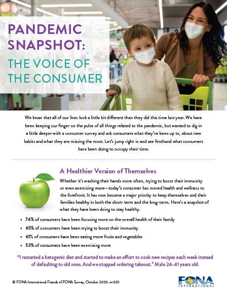 We know that all of our lives look a little bit different than they did this time last year. As a creator of taste and flavor solutions, we've been keeping our finger on the pulse of all things related to the pandemic, but wanted to dig in a little deeper with a consumer survey and ask consumers what they’ve been up to, about new habits and what they are missing the most. From health and wellness at the forefront of their shopping decisions to traveling through new and unique flavors in the kitchen, let’s jump right in and see firsthand what consumers have been doing to occupy their time. Click the report below for more.